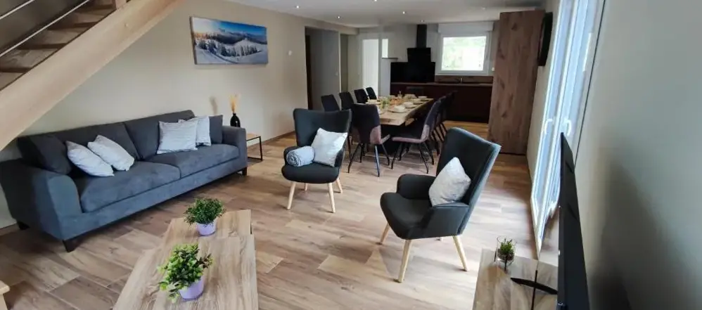 Maison neuve et très bien équipée. Grand salon/salle à manger pour des soirées ensemble. L'emplacement est un bon point de départ pour des randonnées directement depuis la maison ou pour des déplacements en voiture. L'hôte était très gentil.
